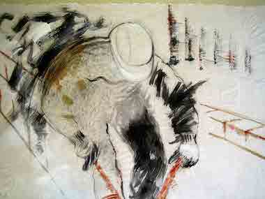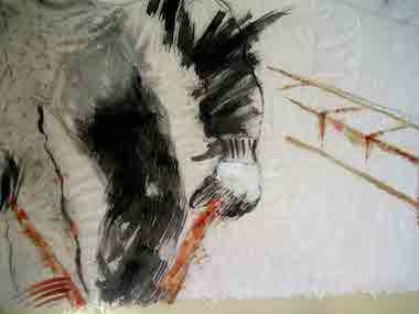 acrylique et fusain s/papier de riz